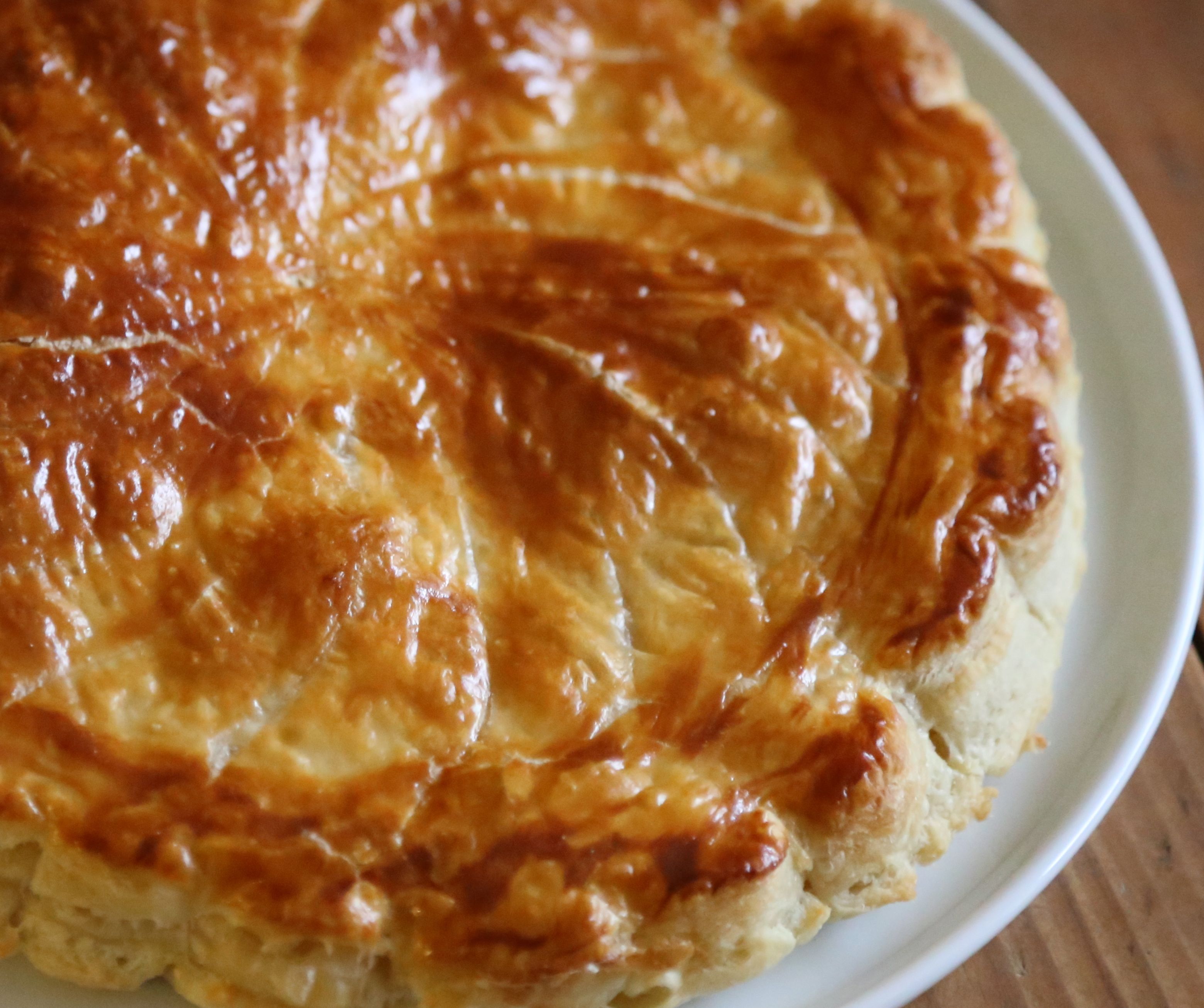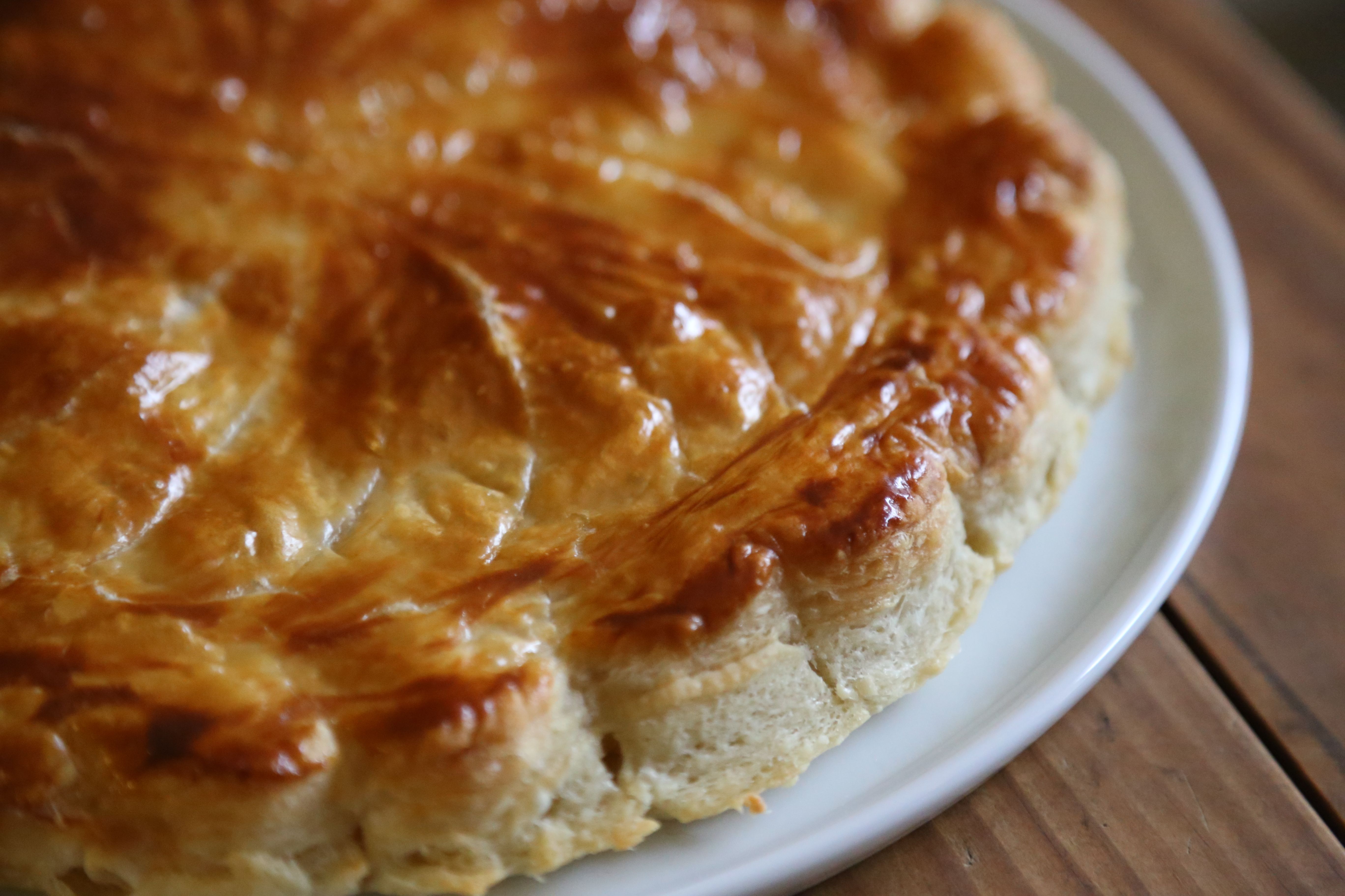 • La Galette de Pithiviers – Named for the town (Pithivier) in the north of France where they allegedly originated. This is the traditional one made of layers of puff pastry filled with almond cream.