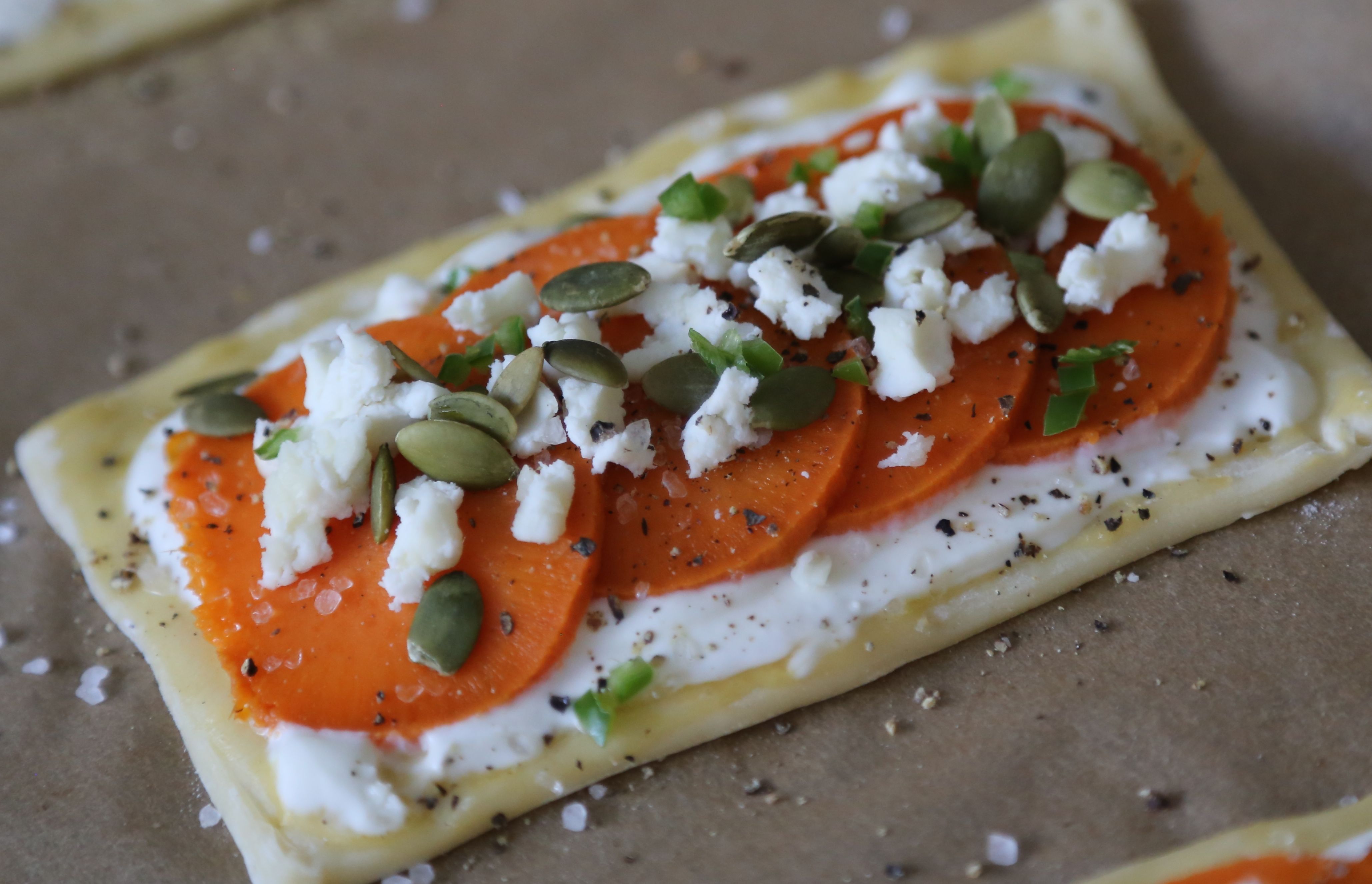 The generous sour cream base and the lightness of the puff pastry carry the sweet potato easily without the risk of a carb overdose.