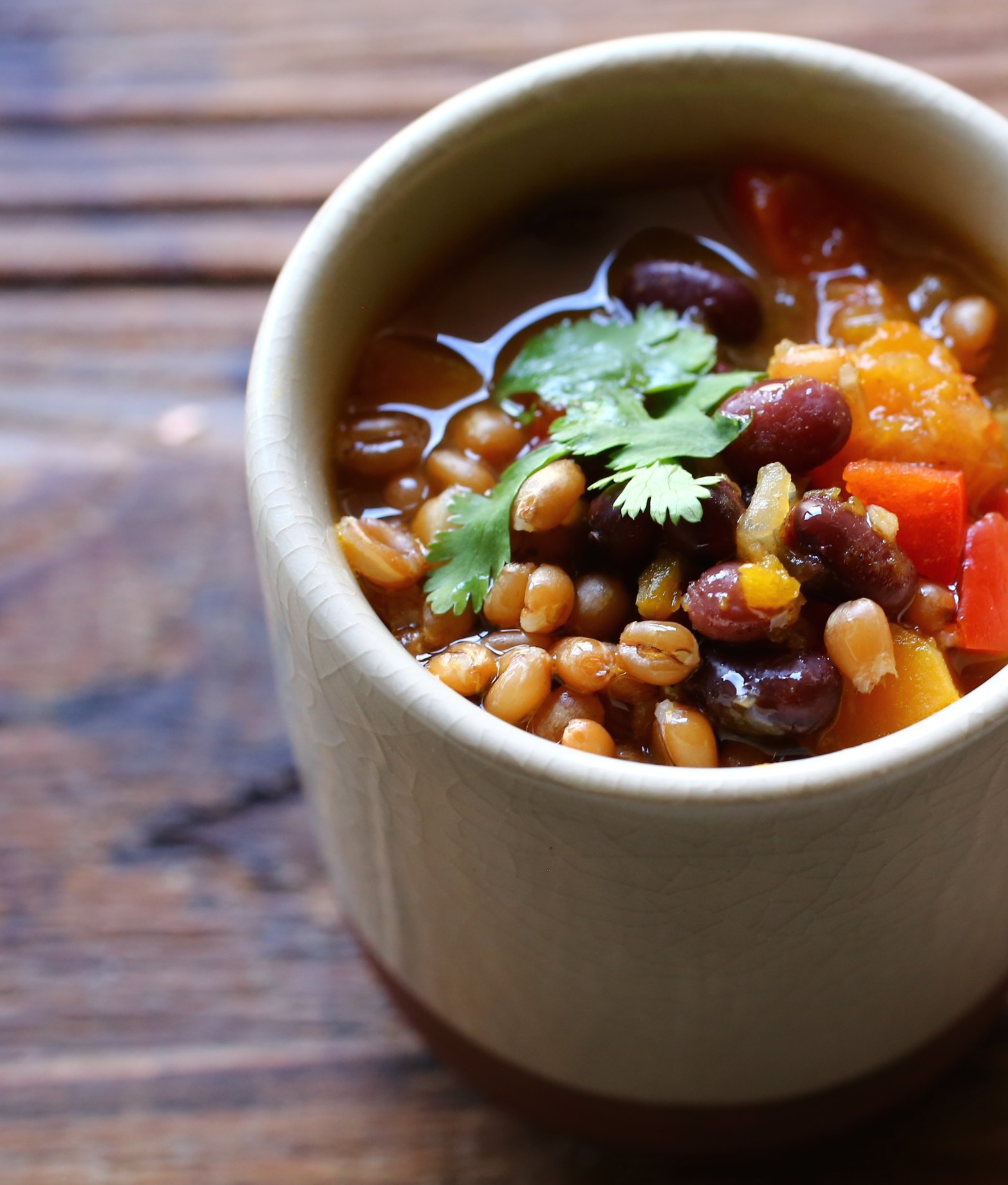 If desired, ladle soup on top of a grain. I served mine with wheat berries, but you can use brown rice, farro, barley or another hearty grain of choice. Sprinkle with chopped cilantro leaves and enjoy!