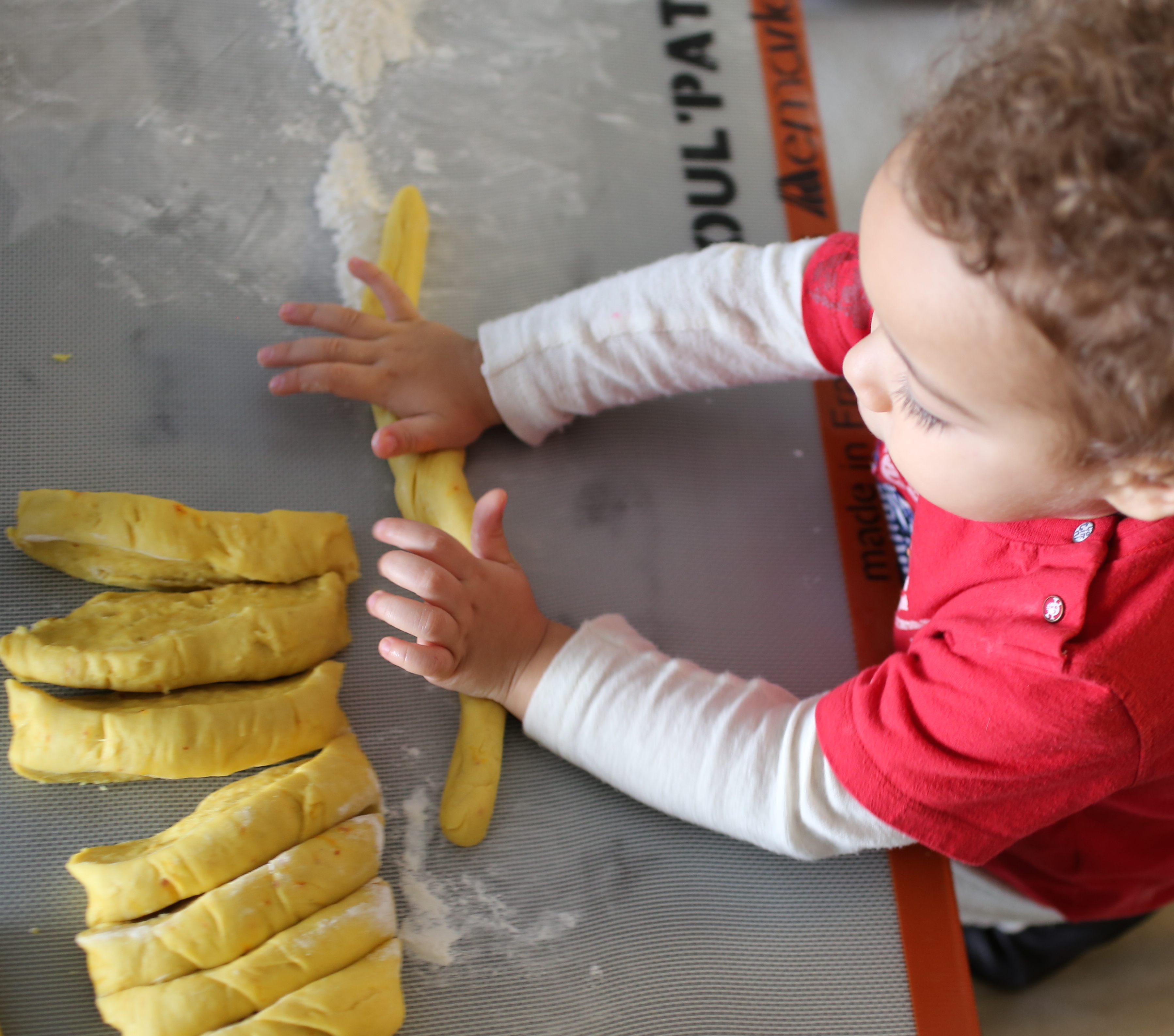 Thank you Liz! I find this Swedish tradition so charming and endearing. What do they do at the Waldorf School to celebrate? Do the kids dress up in white and sing Santa Lucia? Although we’re not of Swedish descent, I think I’ll start baking these curly rolls every year to celebrate Santa Lucia. I might even dress my little one up in white and teach him the song! 🙂 This morning I added a picture of him helping me to roll the buns. I forgot to add it when I posted this yesterday. Please let me know if you make these buns. I’d be interested to know if the texture is right. Although I know what they’re supposed to look like, I’m not sure if i also got the taste and texture right! Happy Santa Lucia Day! and happy baking!