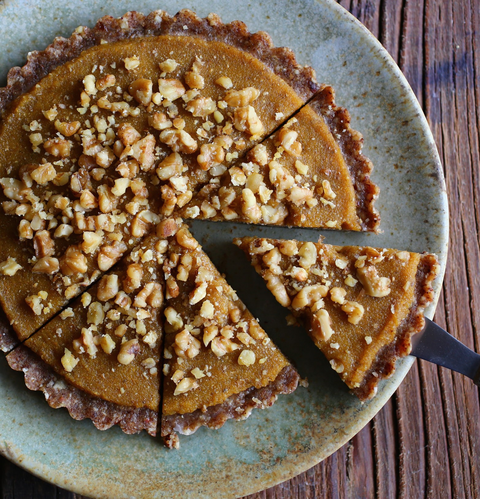 Interestingly, raw pumpkin has a hearty, rich flavor that makes it a good stand-alone snack, side dish or even a dessert (if “dressed” well). When I was recently introduced to this recipe for a “well-dressed” raw pumpkin tart, I knew I had to try it and share with you.