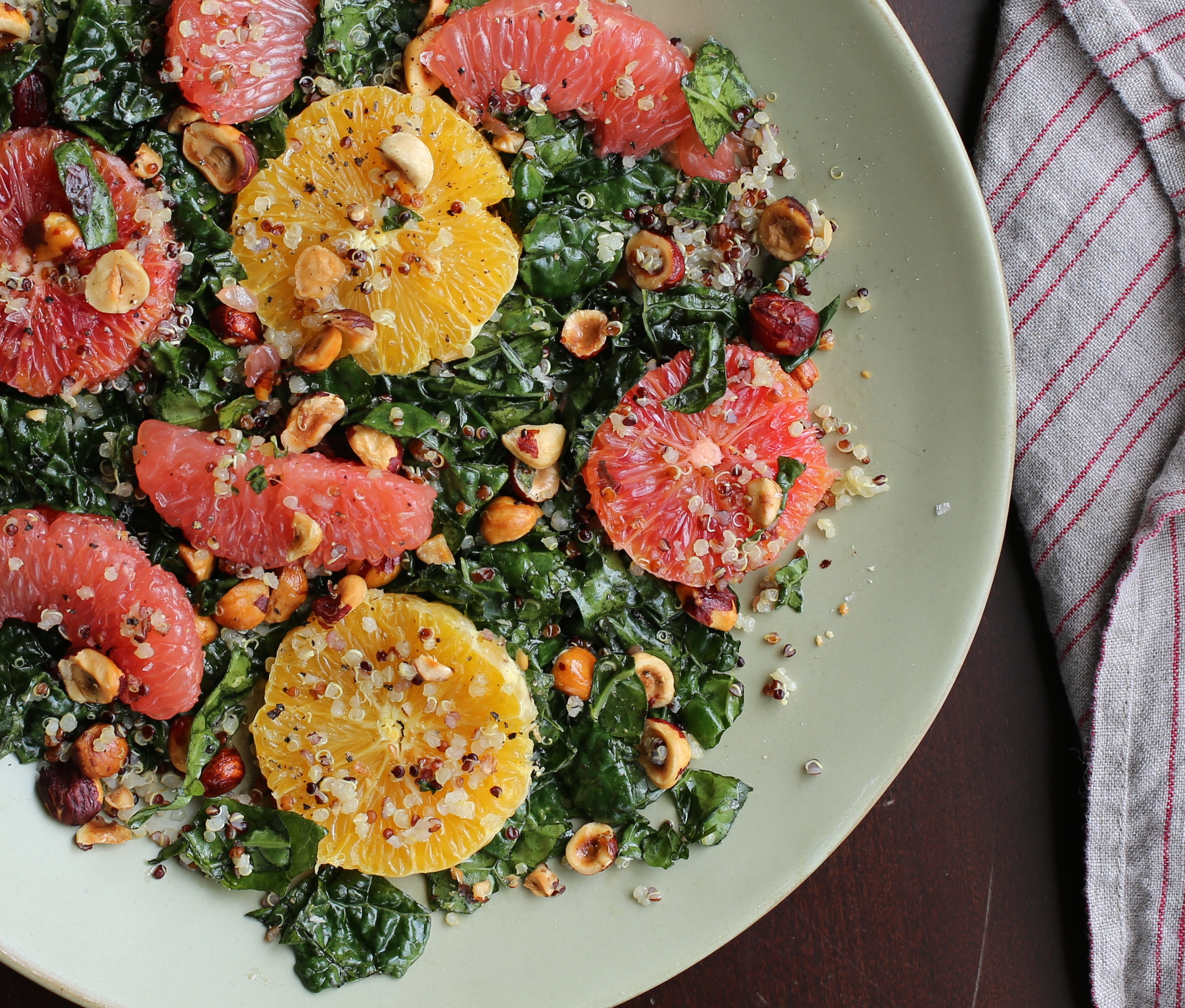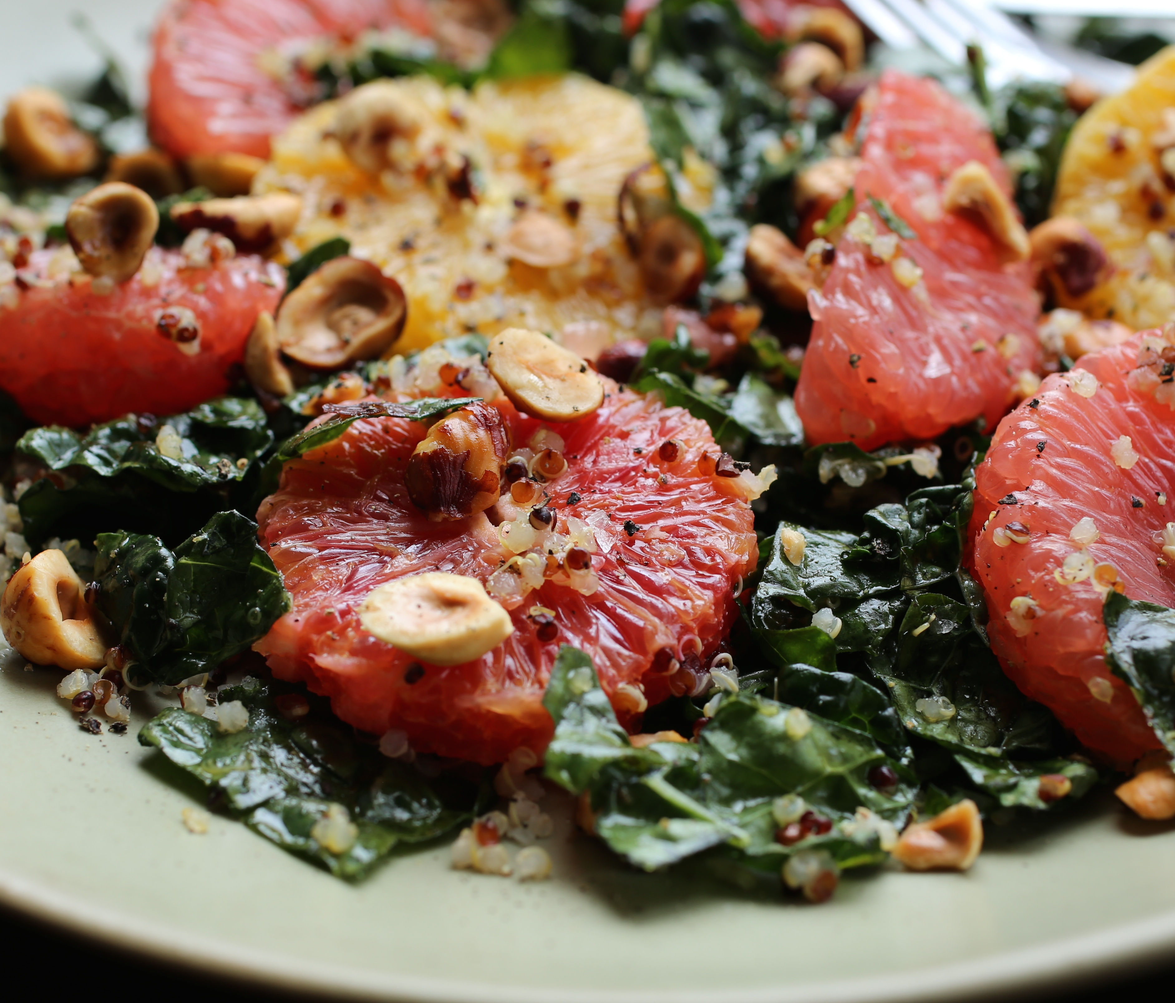 Kale and Grapefruit Salad with Quinoa and Hazelnuts