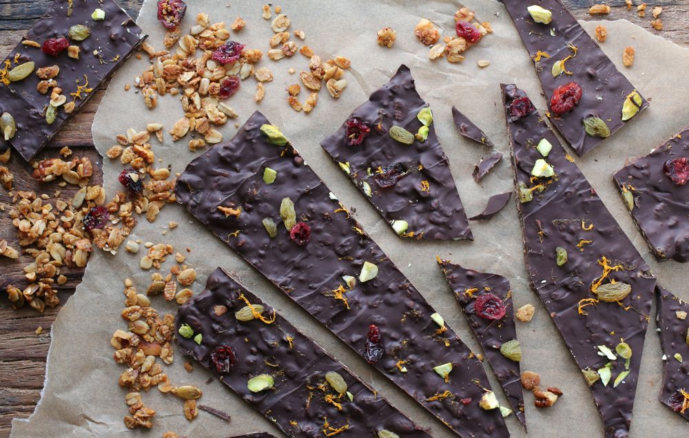 Notes: Use the highest quality chocolate you can find and afford. I normally use the brand “Callebaut”. I buy it from my local Whole Foods. If you like, for a chunkier texture, feel free to add more granola, nuts, and dried fruit.
