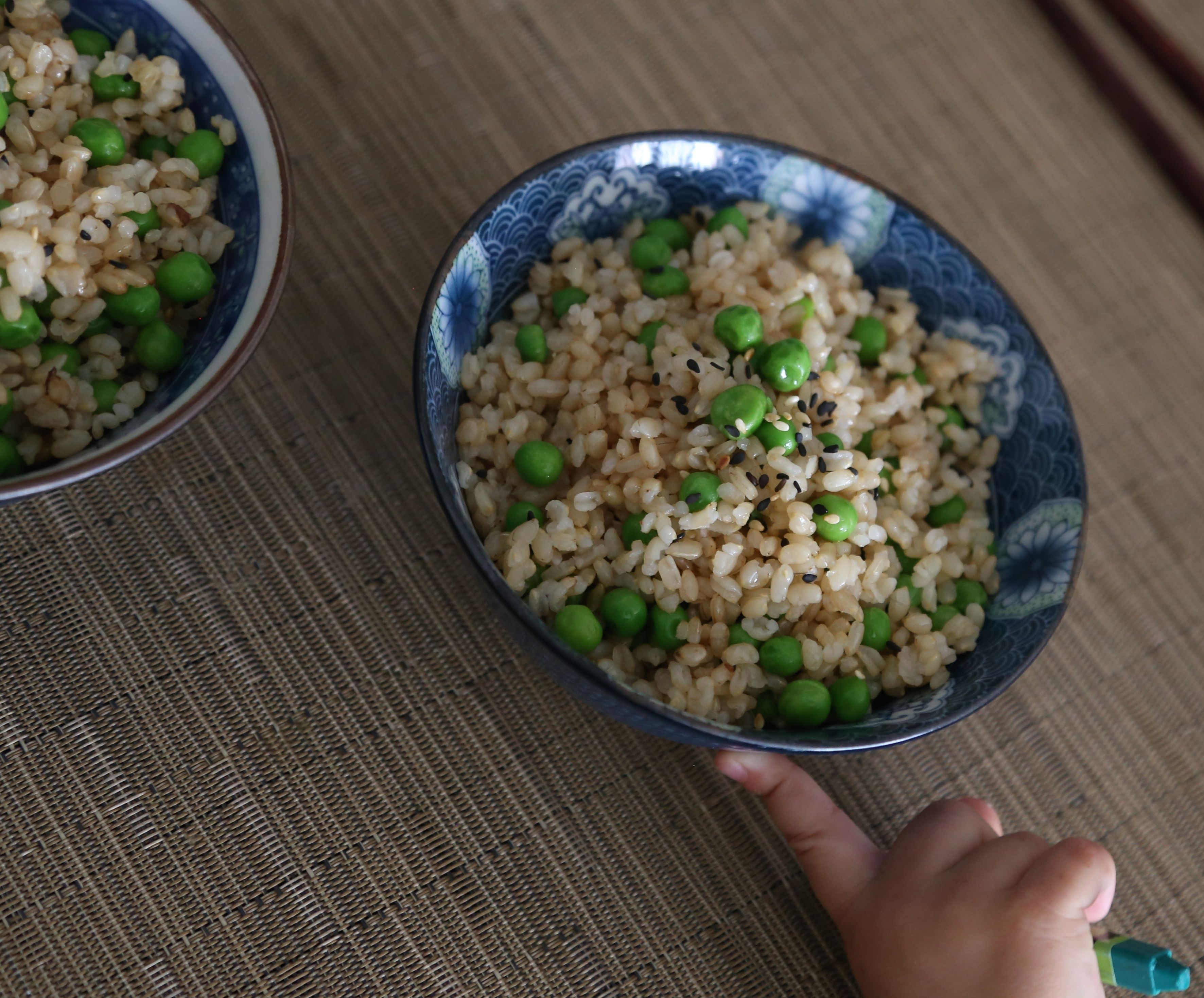 Combine rice and peas. Add sesame oil and salt to taste. You can use olive oil instead of sesame oil. If you’d prefer not to add oil, I’d recommend cooking the rice in vegetable stock and a little salt for added flavor.