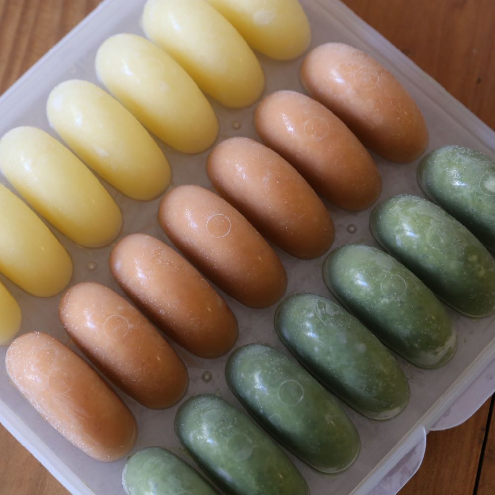 Roasted Pears and Spinach; Carrot, Apple and Mango; and Apple Purée